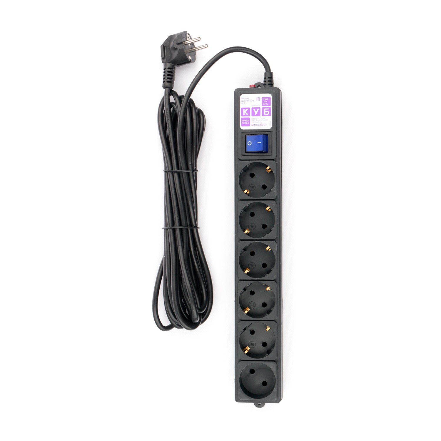 Сетевой фильтр Power Cube Куб SPG6-B5M, Черный 5м, 6 розеток, 16A/3.5кВт