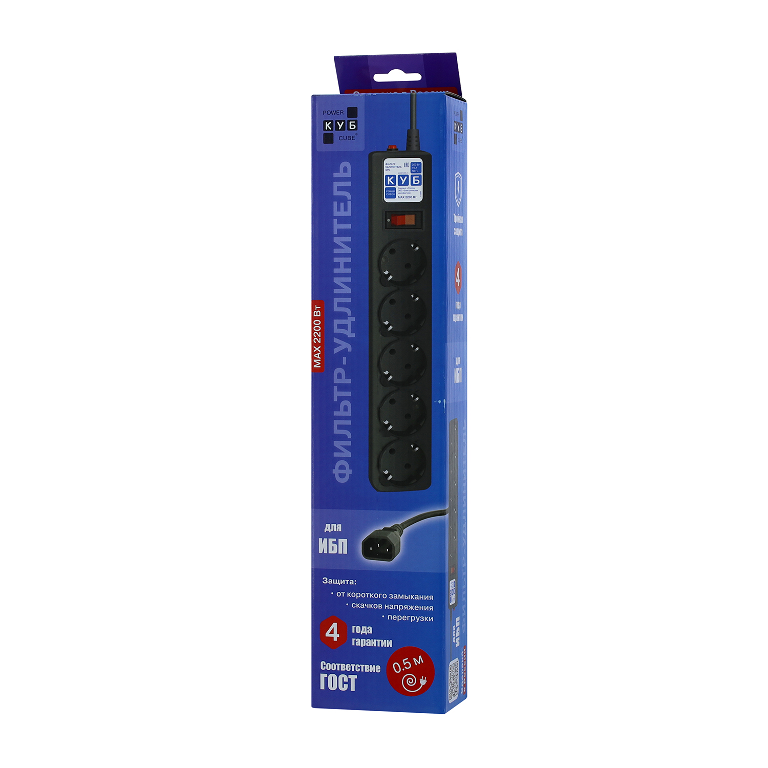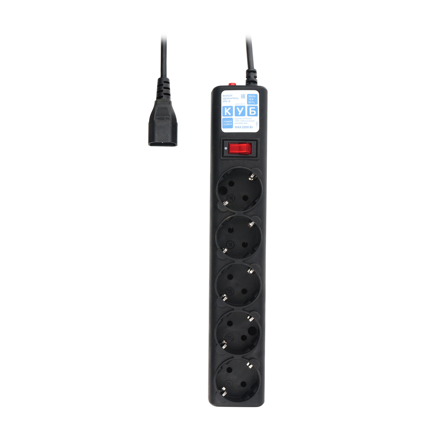 Сетевой фильтр Power Cube, 0,5м, SPG5-B1, 5 розеток, 10A, C14/для ИБП, black