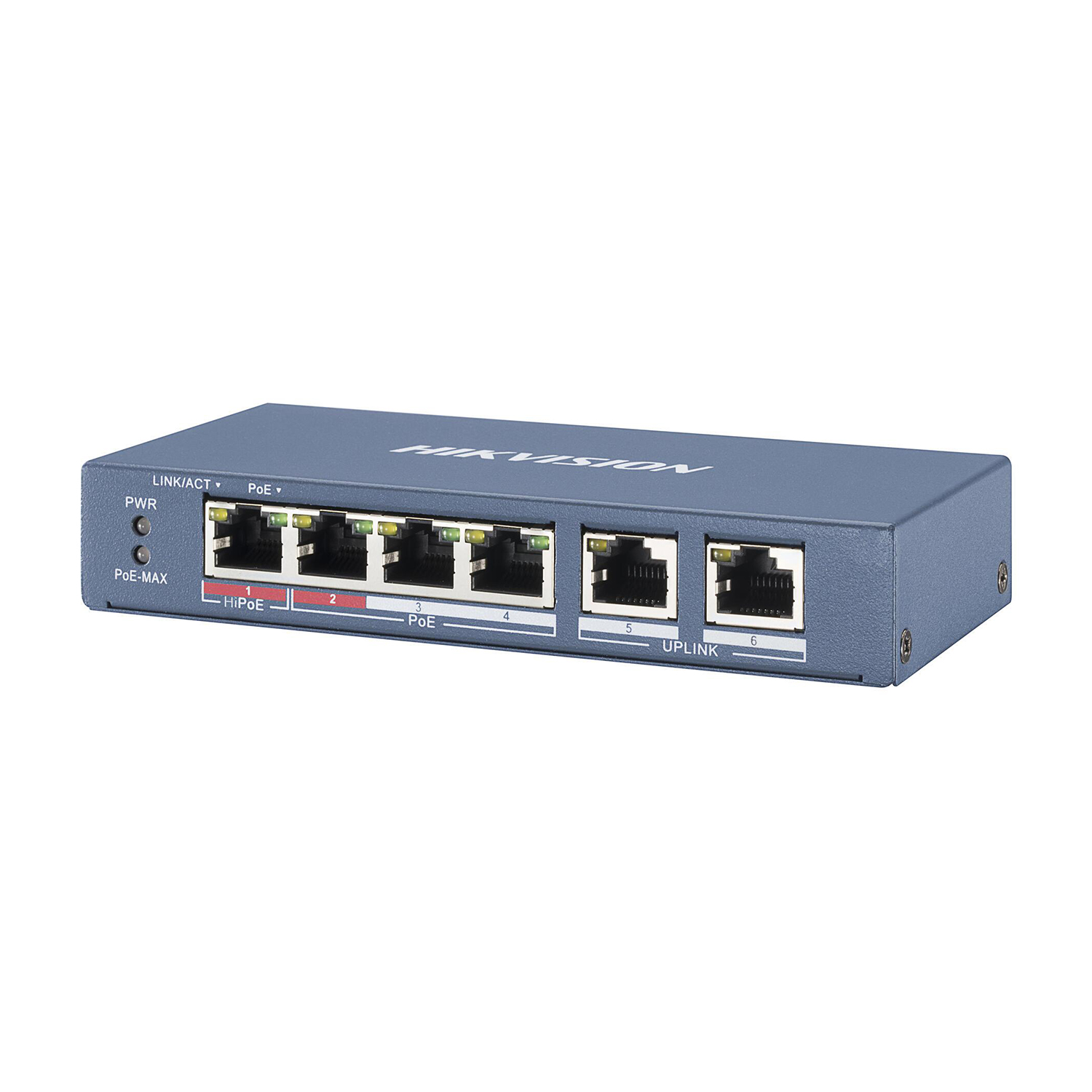Сетевой коммутатор Hikvision DS-3E0106HP-E Switch 4 port 10/100M 2xHi PoE, 3xPoE, 2xRJ45, PoE 60W, desktop