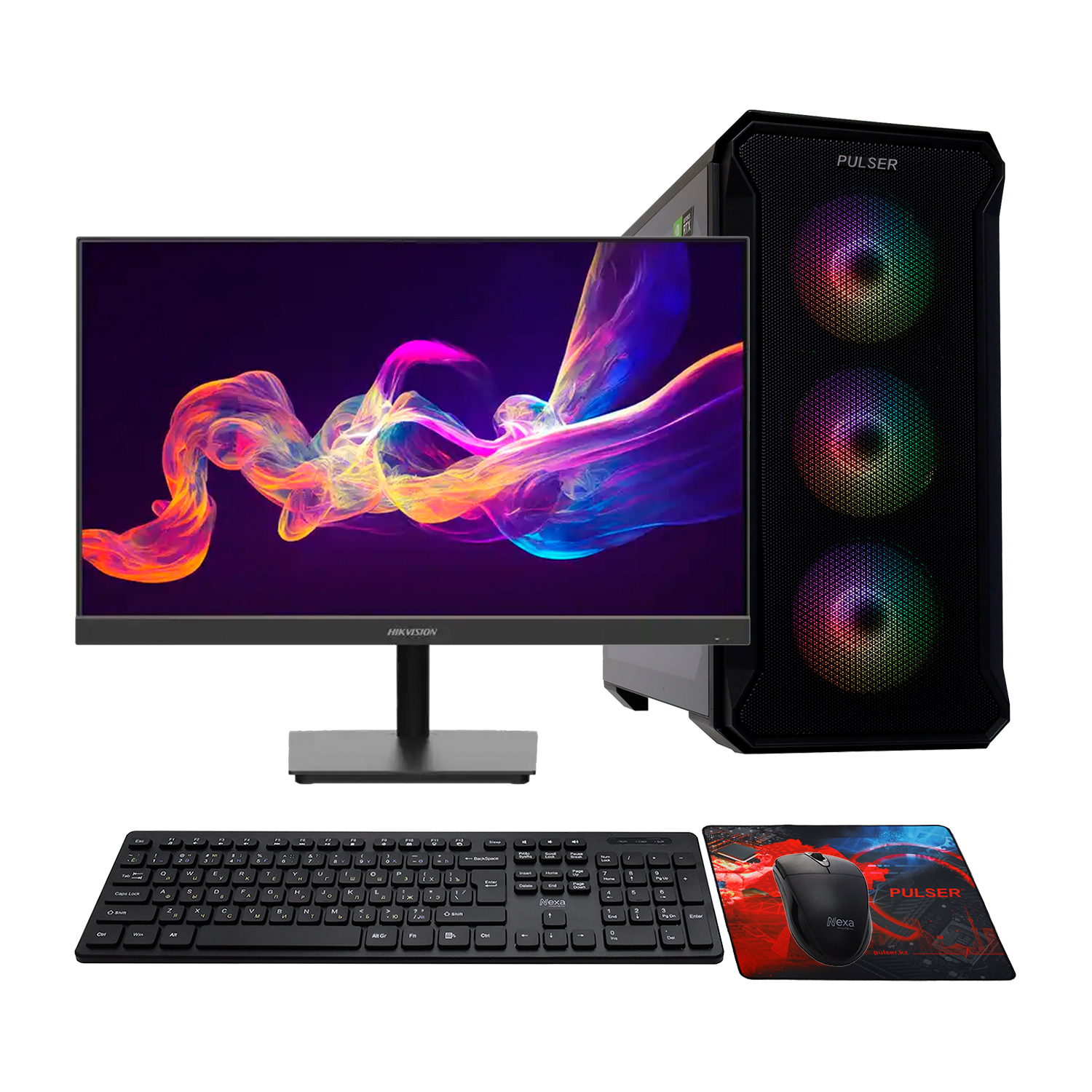 Системный блок Core i5-12400F-2.5GHz/H610/RAM 16GB/SSD 512GB/RTX5050-8GB/no DVD/600W/LCD 23.8" HikVision/Key/Pad/