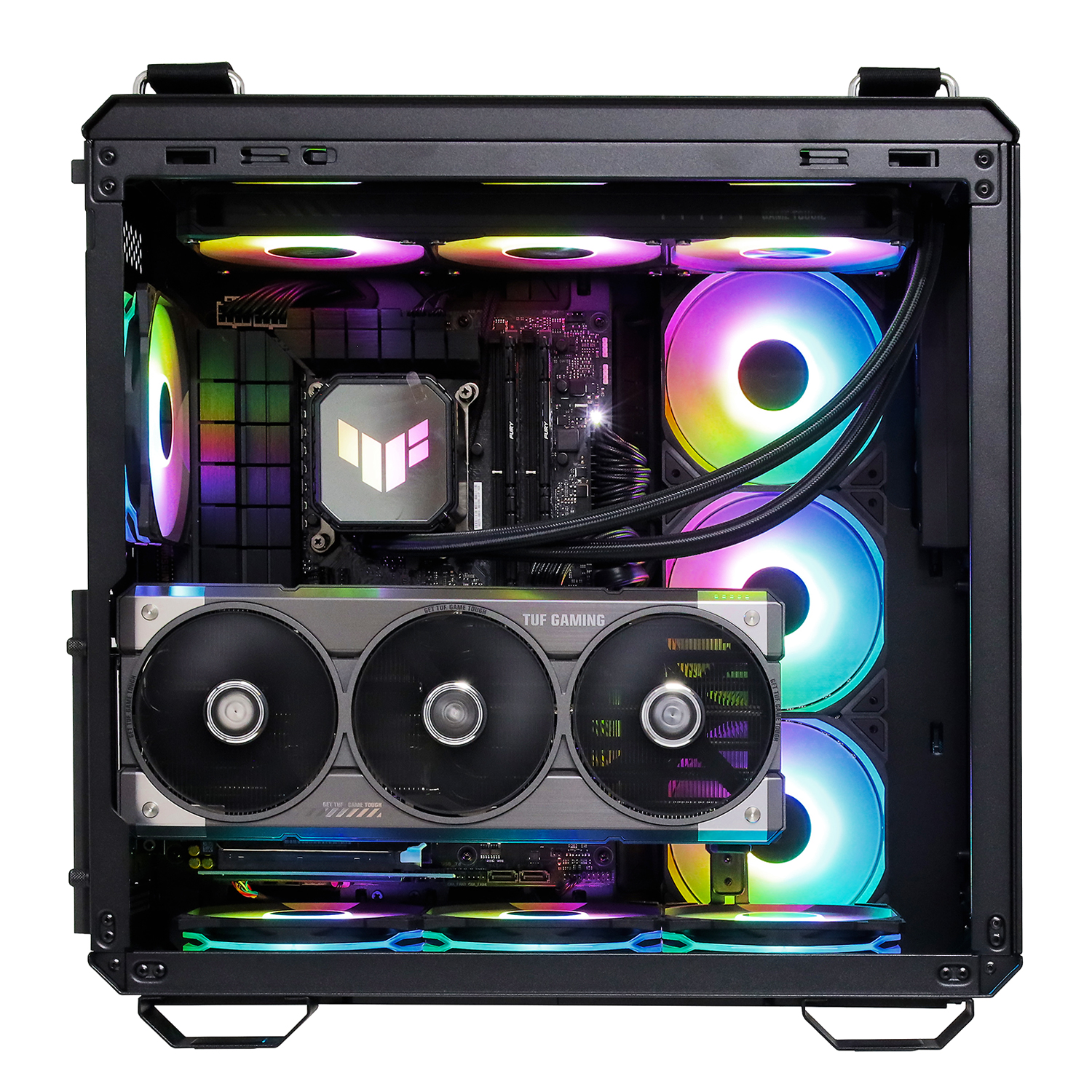Сверху: 3х 120 мм вентилятора от СВО Water Cooler Asus TUF GAMING LC III 360 ARGB