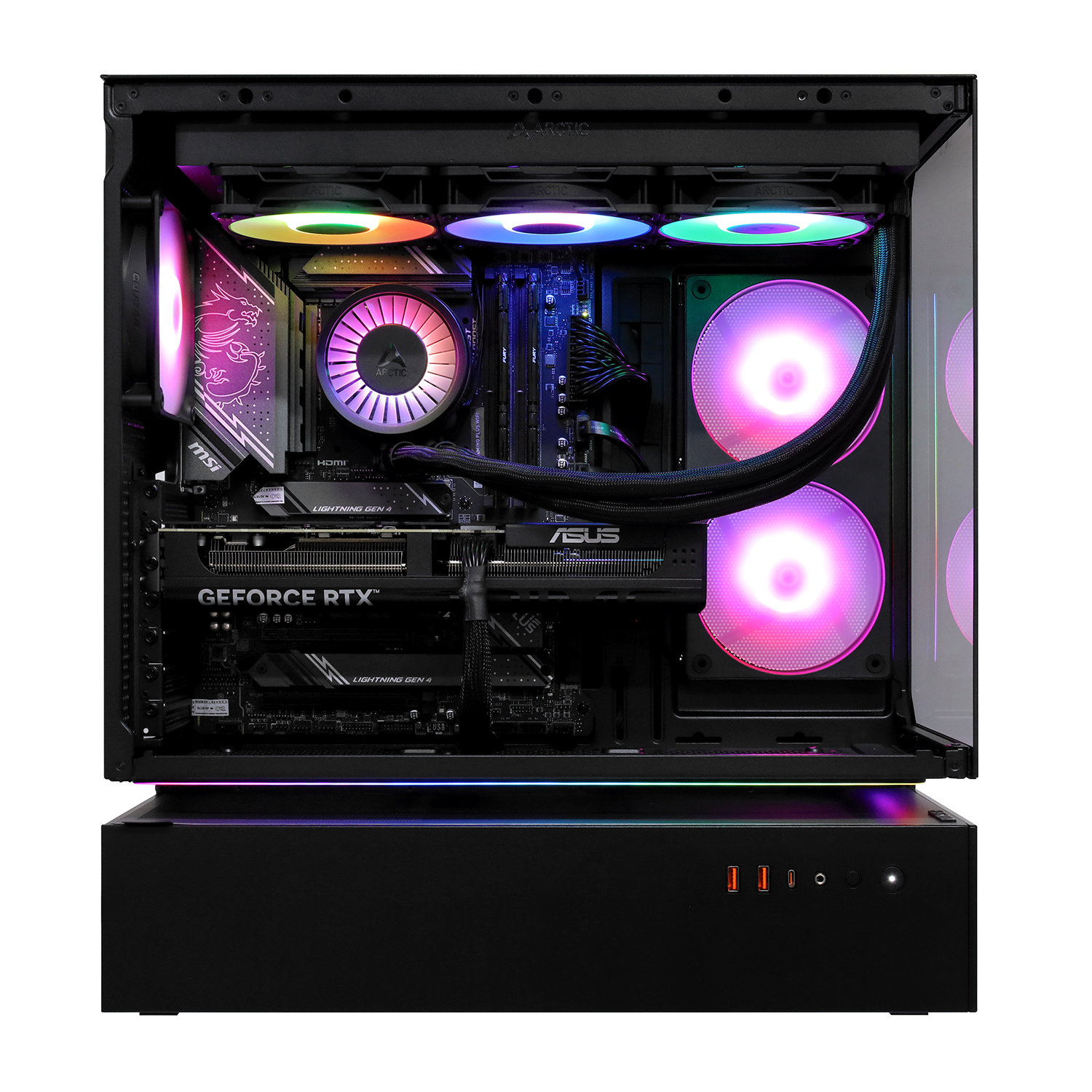 Сверху: 3х 120/140 мм вентилятора (опция) от СВО Arctic Liquid Freezer III PRO 360 A-RGB