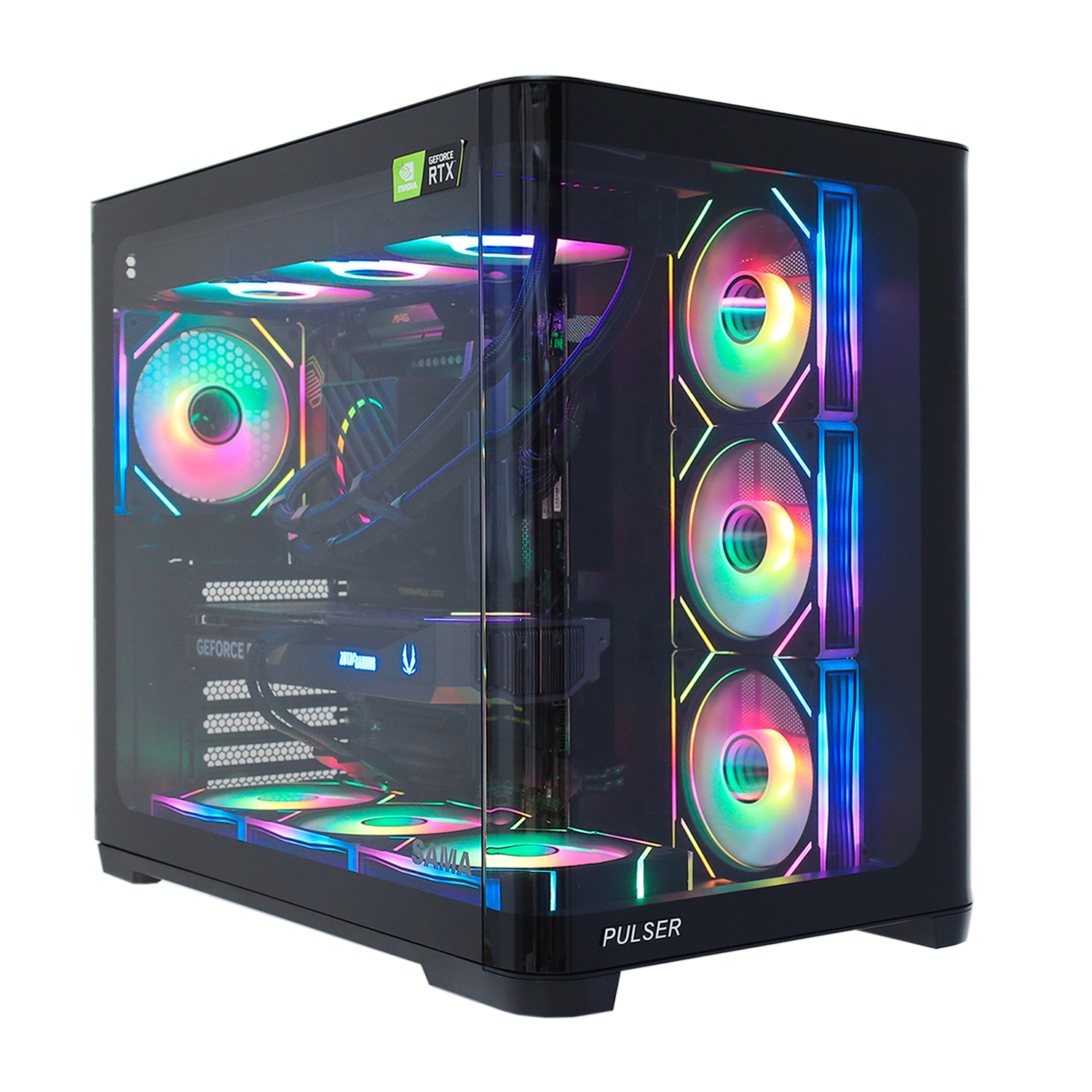 Case ATX midi tower SAMA, 2851A , 4*120 ARGB + ARGB fan hub, black