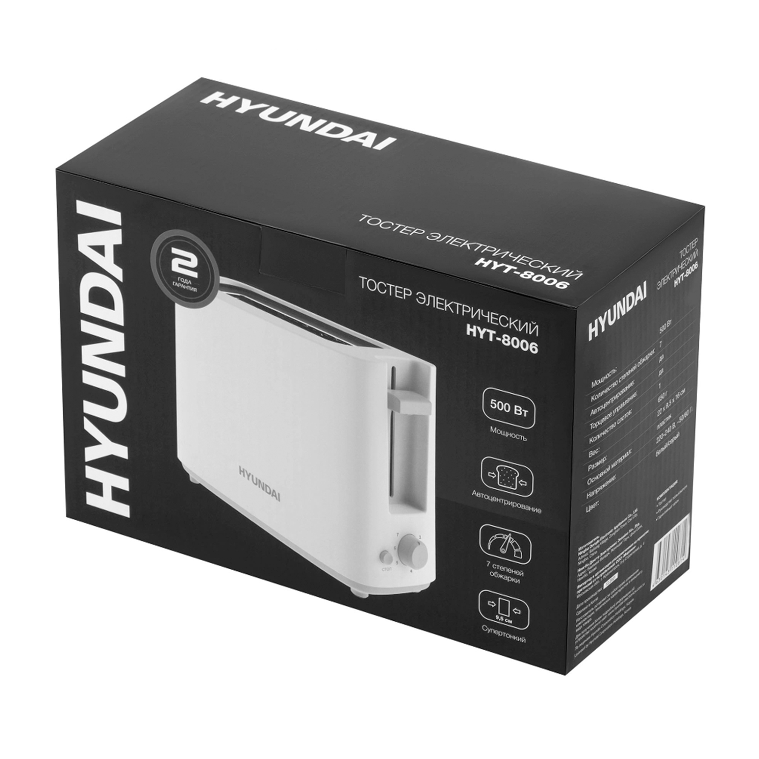 Тостер Hyundai HYT-8006 500Вт белый/серый
