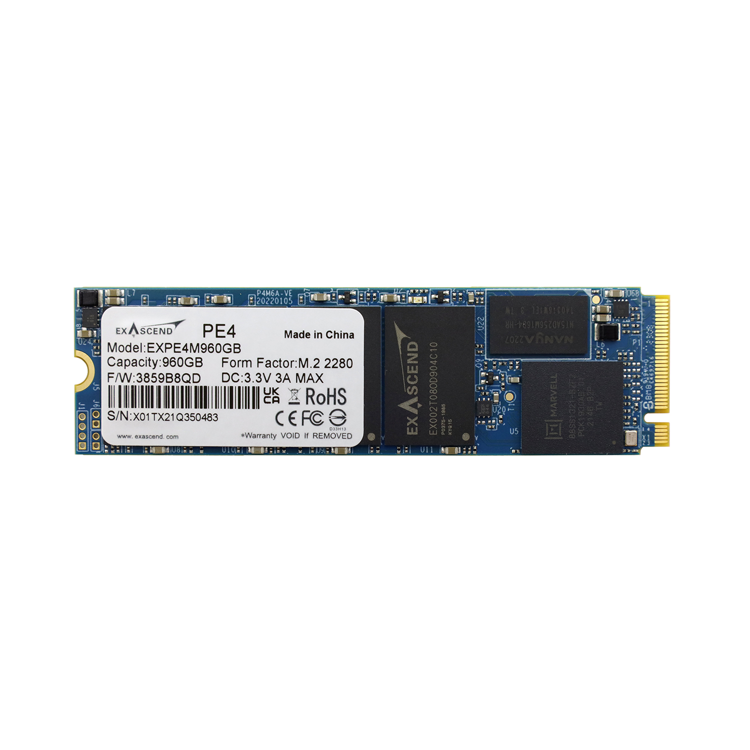 Твердотельный накопитель SSD M.2 PCIe Exascend, EXPE4M960GB, 960GB 960 GB PCIe Gen4 x4