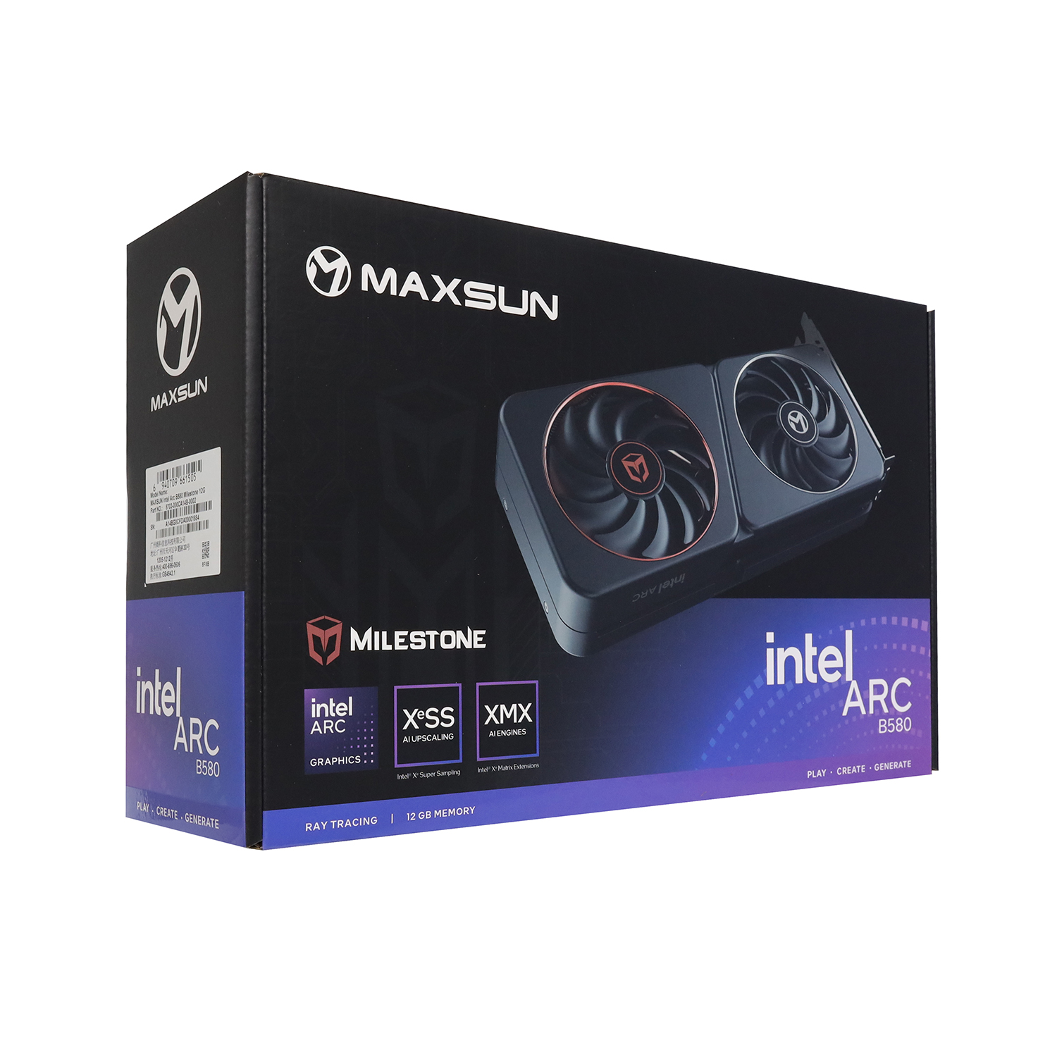 Видеокарта MaxSun Intel Arc MS-Arc B580 Milestone 12G, 12 GB GPU INTEL, HDMI/3DP,GDDR6/192bit, [MS-Arc B580 Milestone 12G]