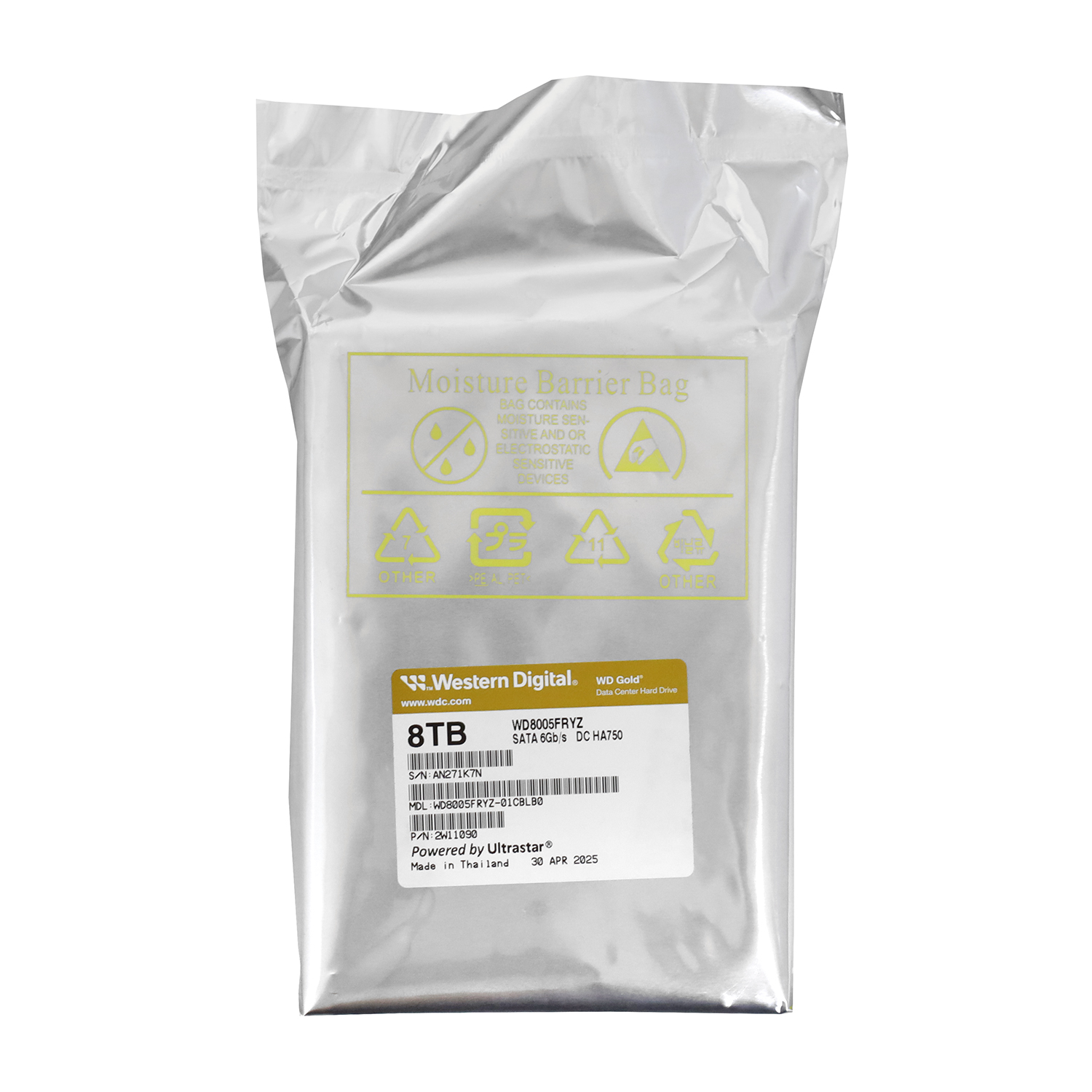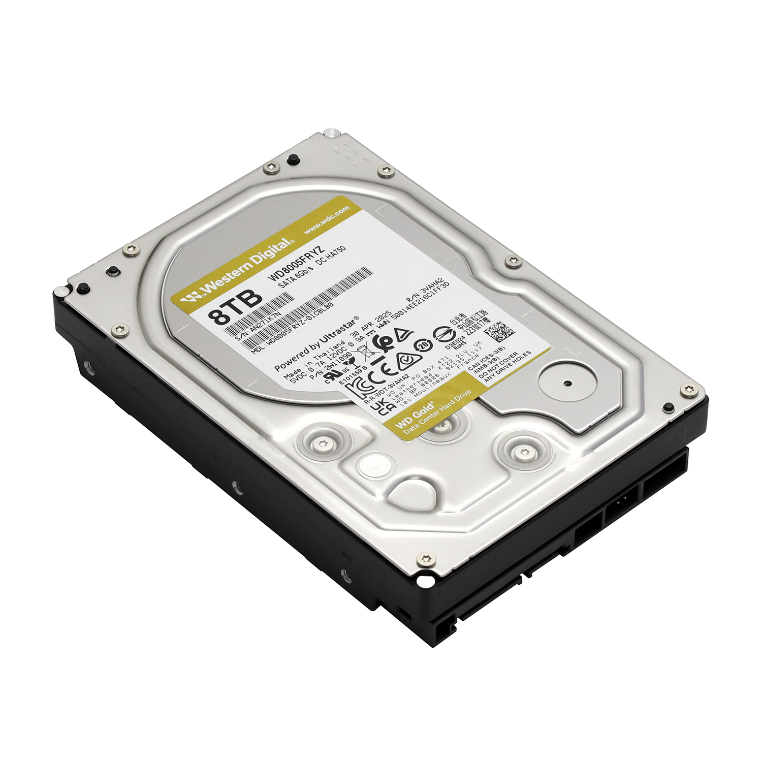 Жесткий диск Western Digital Gold, 8000 GB HDD SATA WD8005FRYZ, 7200rpm, 256MB cache, SATA 6 Gb/s