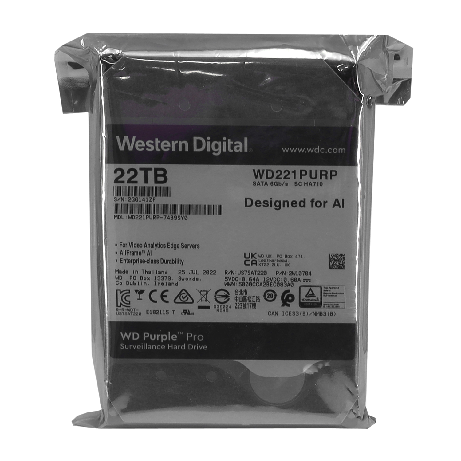 Жесткий диск Western Digital Purple, 22000 GB HDD SATA WD221PURP, 7200rpm, 521MB cache, SATA 6 Gb/s