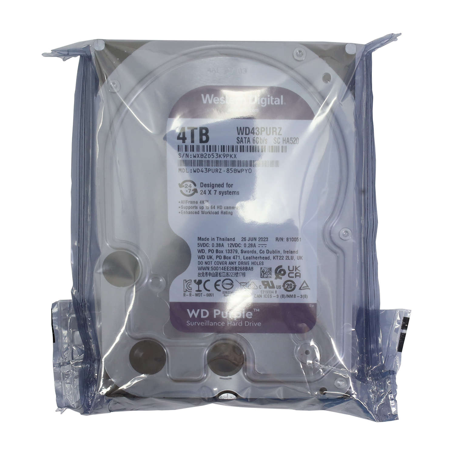 Жесткий диск Western Digital Purple, 4000 GB HDD SATA Surveillance, WD43PURZ, 5400rpm, 256MB cache, SATA 6 Gb/s